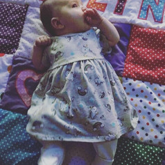 Here she is at a few days old on her 1st ever quilt...this has been made to match in with her rainbow themed nursery but i'm delighted to see that she uses it for all sorts of things. She even takes it with her to her weekly session at the Sing & Social club.....check out the 3rd photo of her at 8 weeks old...hasn't she changed?